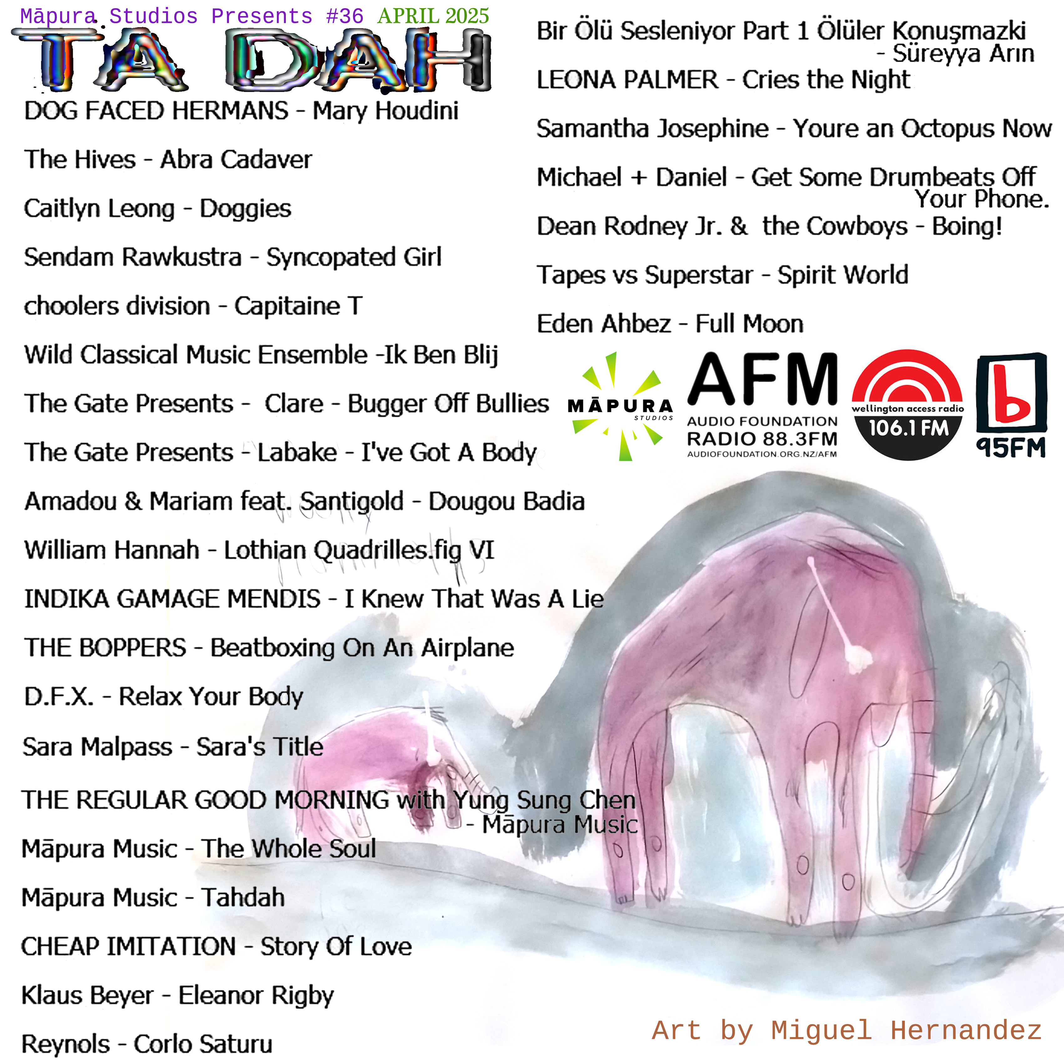 “Magic is in the air with the latest Māpura Studios radio show with music flooded in free range electronic rhythms, unpredictable perspectives & impulsive percussive mess. We feature music made by people with disabilities from Africa, Belgium, USA, UK, Argentina, Germany & Aotearoa. We celebrate bodies, Lies, Love, the whole soul, doggies & octopus. Hosted by Stefan Neville with contributions from Yung Sung Chen, Indika Gamage Mendis, Liam Young, Daniel Moore & Māpura Music.”